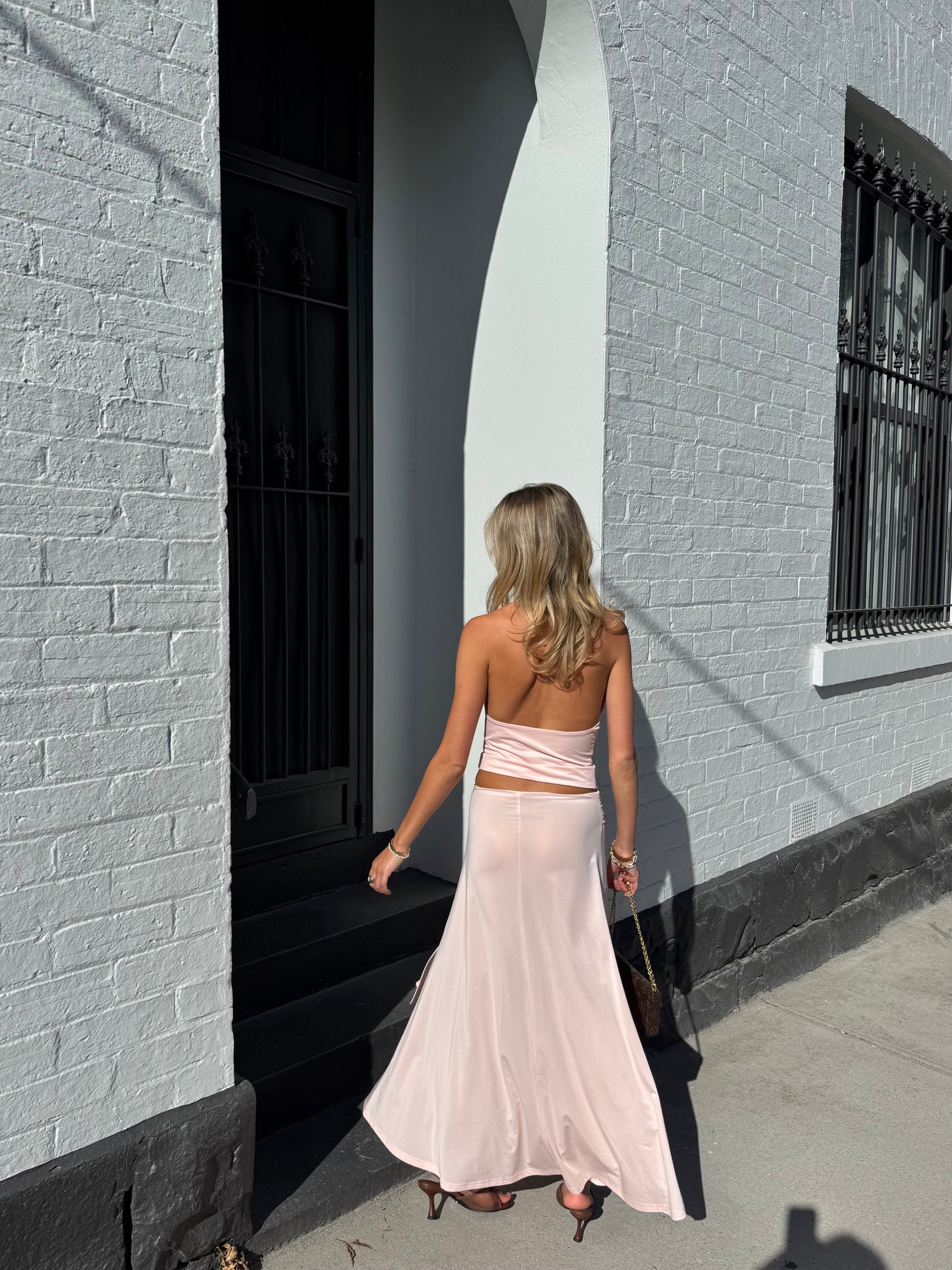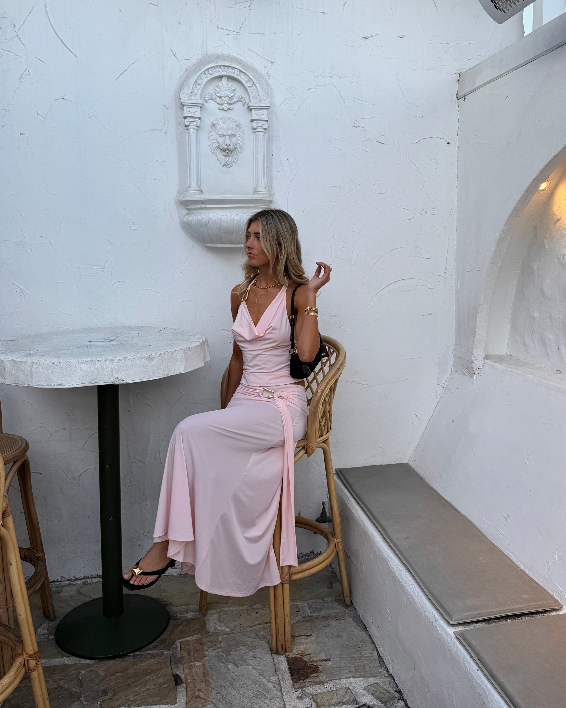 A pale pink colour with matte gold hardware and a low back - Inspired by the Italian wine region Siena. The perfect set for those special occasions, holidays, going to a winery with a spritz in hand.